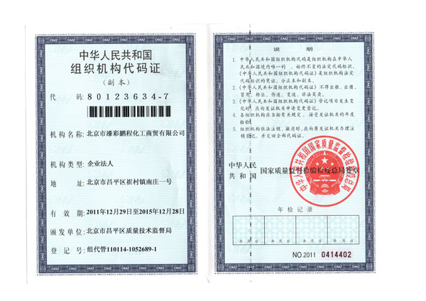 來源:北京市漆彩鵬程化工商貿(mào)有限公司 關(guān)鍵字:代碼證 發(fā)布時(shí)間:2014-04-24